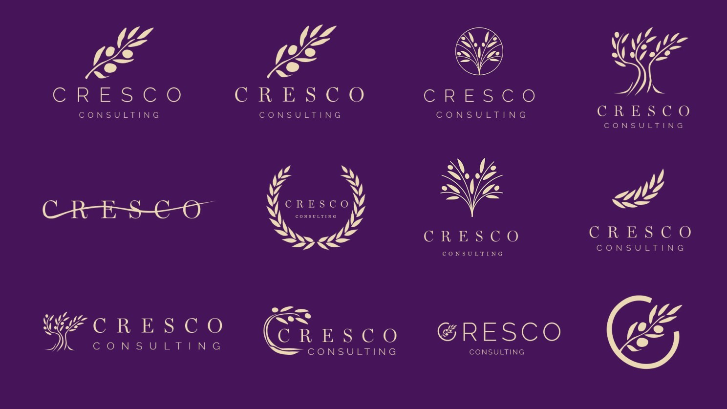 The tree motif resonates with Cresco’s core meaning of “to grow,” while organic shapes, free of harsh lines, lend warmth and accessibility to the brand. By choosing an olive tree specifically, we not only reference Paul’s Italian heritage but also draw upon the olive tree’s universal symbolism of peace and prosperity.